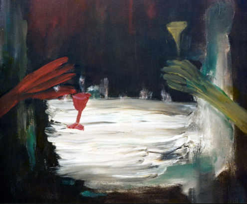 | "Ly rượu màu đỏ" - Tranh sơn dầu Trịnh Công Sơn. |